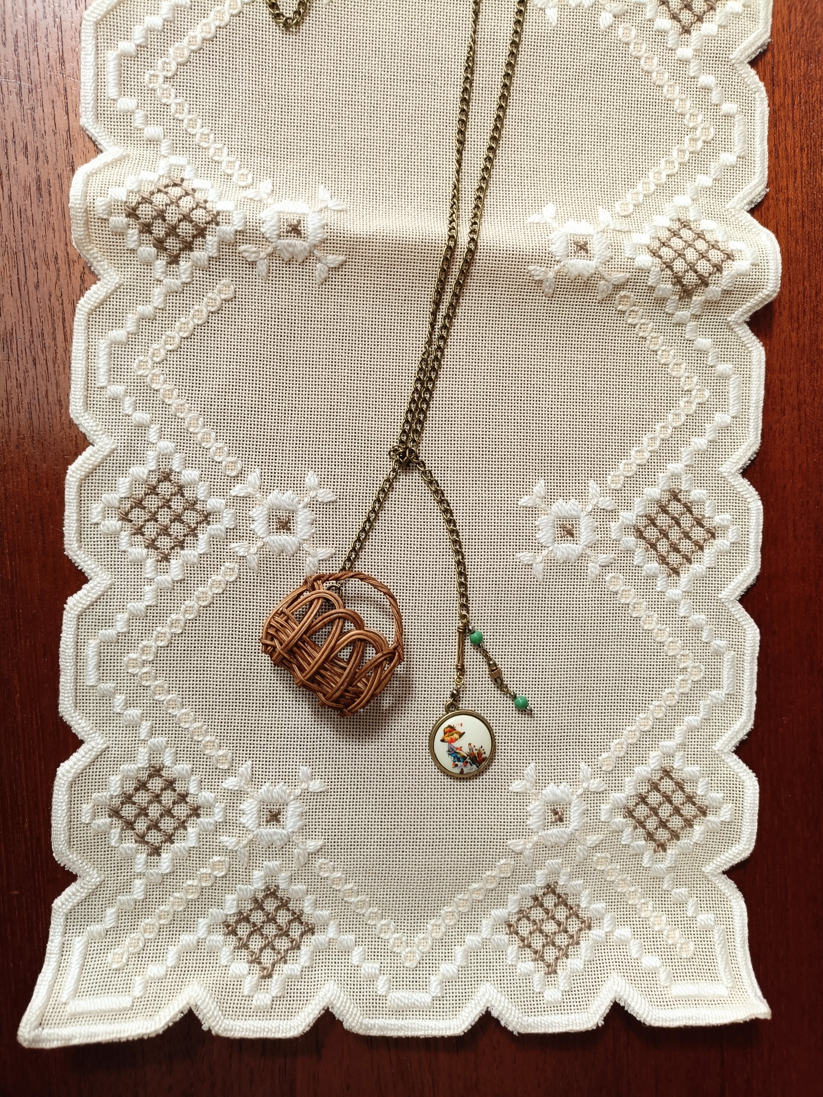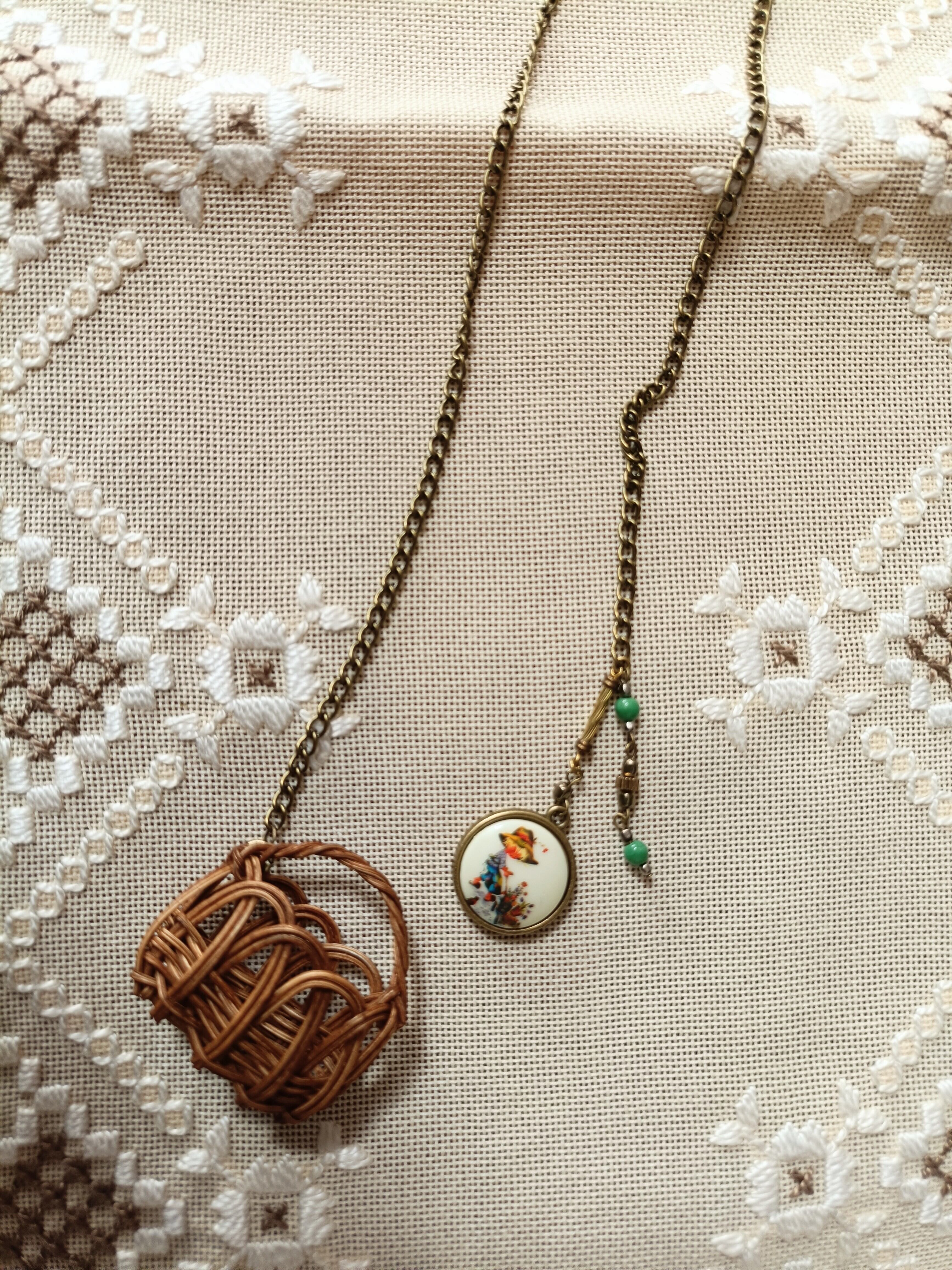 ミニかごとヴィンテージビーズのネックレスです。
