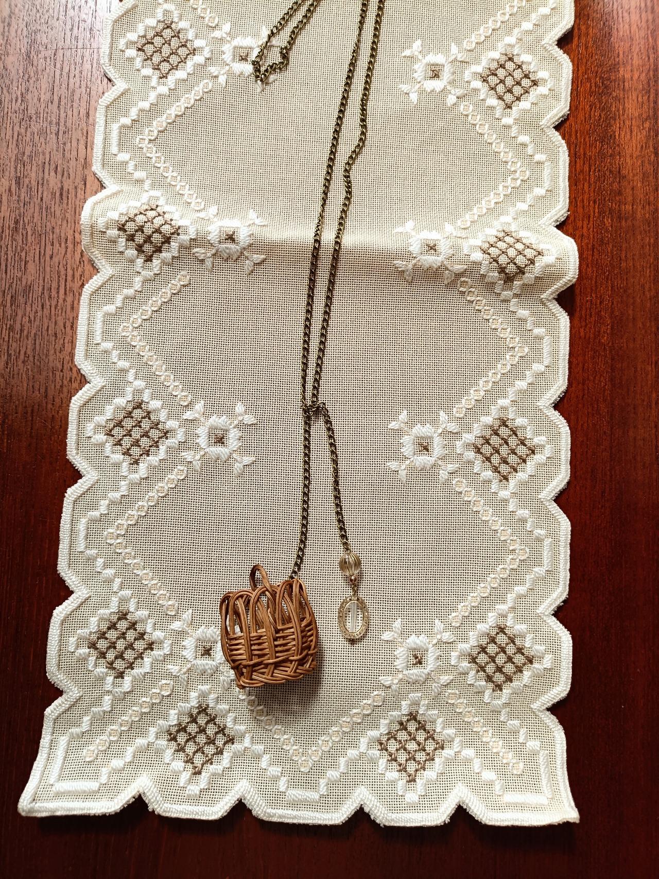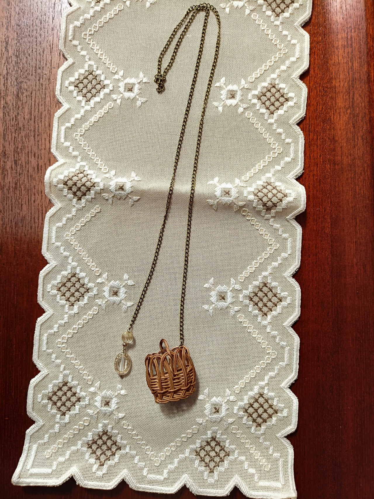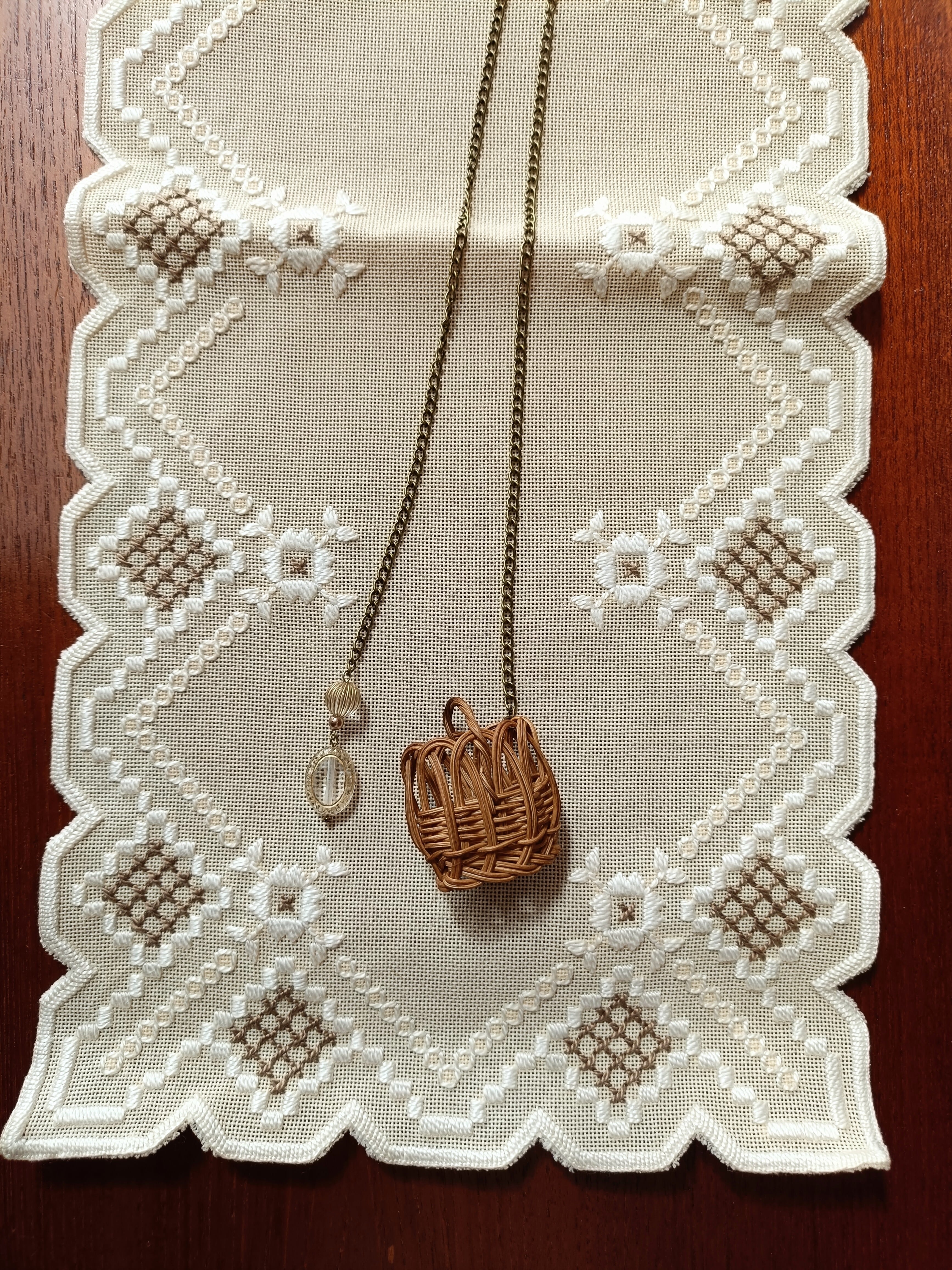 ミニかごとビーズのネックレスです。
